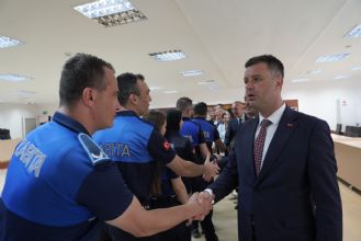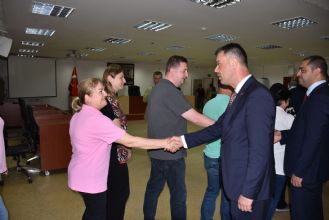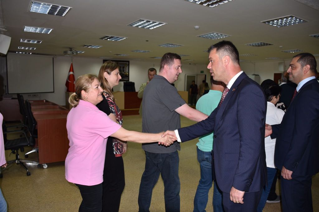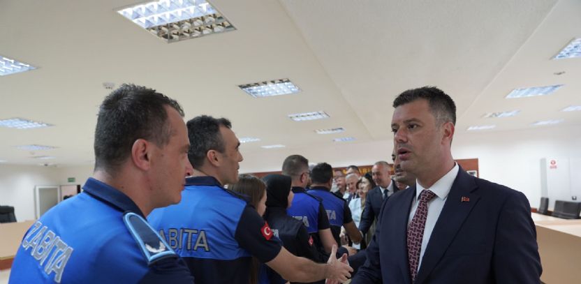 Çorlu Belediye Başkanı Ahmet Sarıkurt, belediye başkan yardımcıları ve meclis üyelerinin de katılımıyla düzenlenen bayramlaşma töreninde belediye personel ile bayramlaştı.