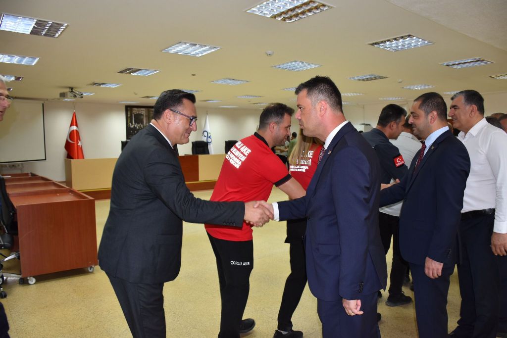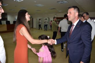 Kurban bayramı dolayısıyla Çorlu Belediyesi Meclis Salonu’nda gerçekleştirilen bayramlaşma törenine Başkan Ahmet Sarıkurt ile birlikte, Belediye Başkan Yardımcıları Adnan Kum, Güner Çetin, Doğukan Dağ, İbrahim Turgut Bolat ve Hakan Öztürk, belediye meclis üyeleri, birim müdürleri ve belediye personeli katıldı.