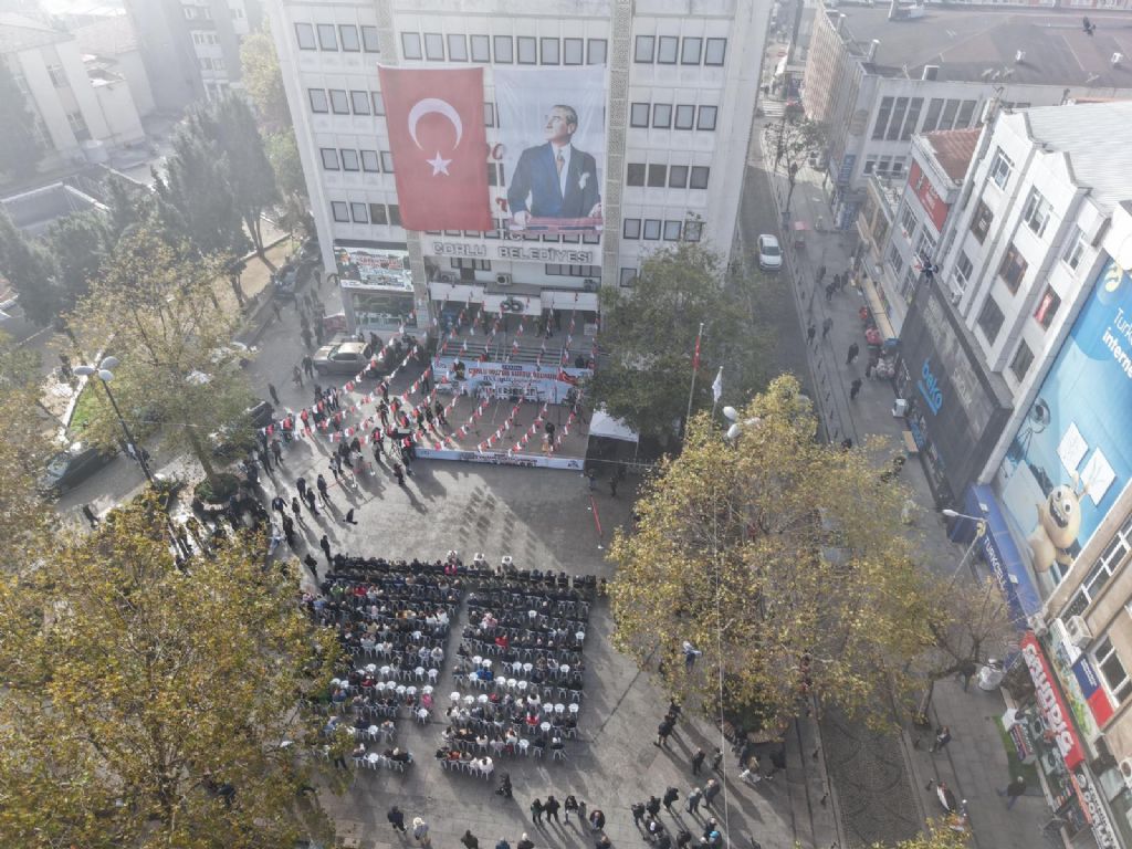 Cumhuriyet Meydanı, Çorlu Belediye binası önünde düzenlenen etkinliklere katılım yoğundu. Törene;