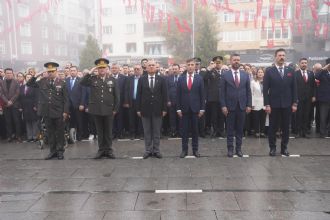 Atatürk Meydanı'ndaki çelenk sunma töreninin ardından program, Cumhuriyet Meydanı'nda devam etti. Buradaki etkinlikler, saygı duruşunda bulunulması ve İstiklal Marşı'nın seslendirilmesiyle başladı.