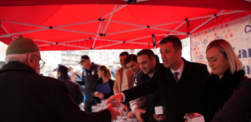 Başkan Sarıkurt: “Miraç Kandili gibi mübarek günlerin ruhu, paylaşmak ve bir arada olmaktır. Bugün şehrimizin en yoğun noktalarından biri olan Perşembe Pazarı’nda hemşehrilerimizle kucaklaştık. Küçük bir ikramla gönüllere dokunmak, kandilin bereketini birlikte paylaşmak istedik. Tüm halkımızın Miraç Kandili’ni bir kez daha tebrik ediyorum.” dedi.