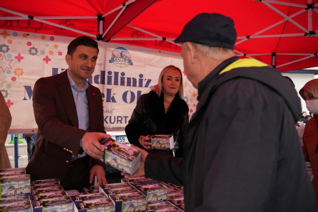Çorlu Belediye Başkanı Ahmet Sarıkurt, Miraç Kandili vesilesiyle Perşembe Pazarında vatandaşlarla bir araya gelerek kandil simidi ikramında bulundu.