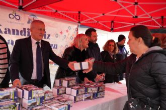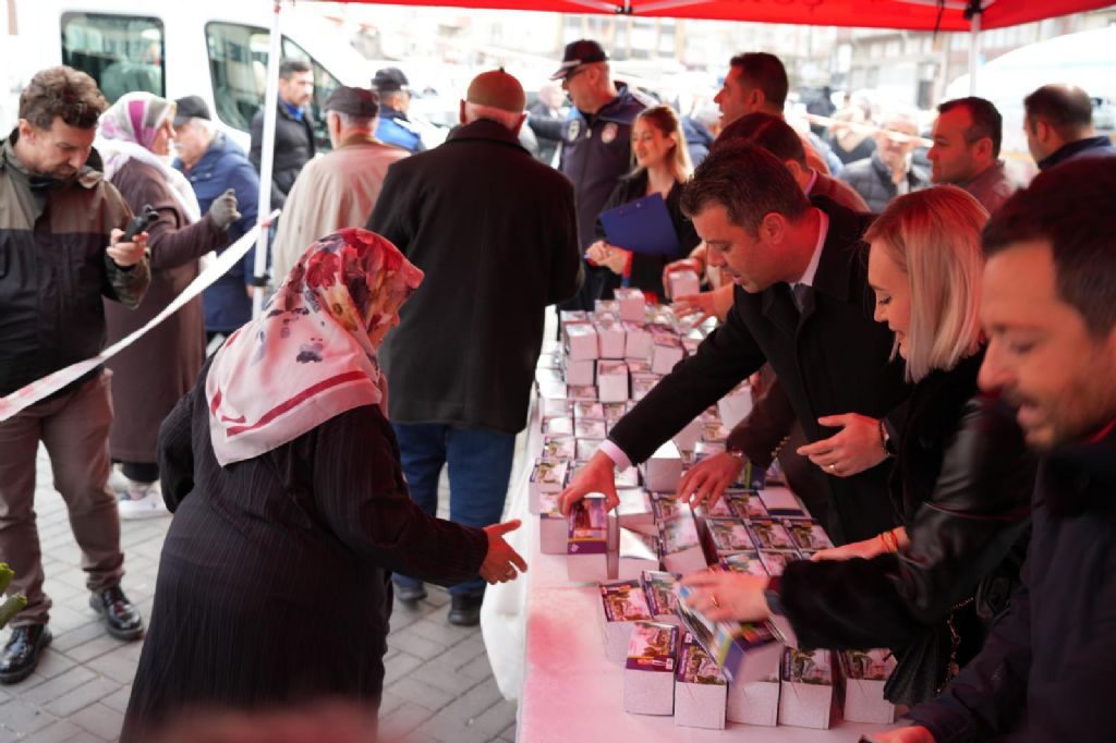 Pazar girişinde gerçekleştirilen etkinlikte Başkan Sarıkurt, hemşehrilerinin kandilini kutlayarak kandil simidi ikramında bulundu.