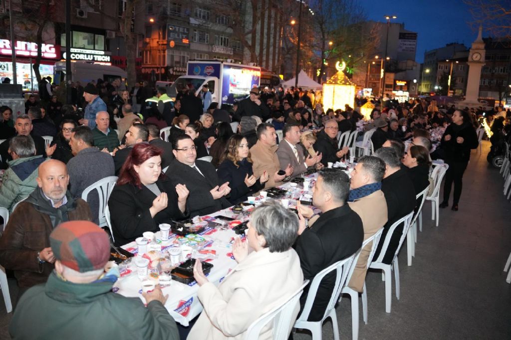 Başkan Sarıkurt, “Bu anlamlı iftar programını Çorlu’muzda düzenleyen Tekirdağ Büyükşehir Belediye Başkanımız Sn. Candan Yüceer’e ve Tekirdağ Büyükşehir Belediyesi’ne gönülden teşekkür ediyorum. Büyükşehir Belediyemizle el ele vererek hemşehrilerimizin yanında olmaya, sofraları büyütmeye ve dayanışmayı güçlendirmeye devam ediyoruz. Çorlu Belediyesi olarak bizler de ramazan ayı boyunca mahallelerimizde kurduğumuz iftar sofralarında hemşehrilerimizle bir araya geliyor, aynı lokmayı paylaşıyor, aynı gönül sofrasında buluşuyoruz. Tüm hemşehrilerimizi iftar programlarımıza bekliyoruz. Bu şehirde hiçbir hemşehrimizin kendini yalnız hissetmemesi için var gücümüzle çalışmaya devam edeceğiz.”