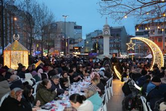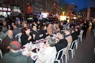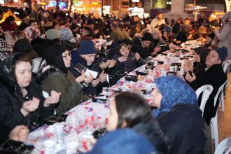 Mübarek ramazan ayının bu güzel akşamında, soframızı ve gönlümüzü paylaşmak üzere Cumhuriyet Meydanı’nda bir araya gelmenin mutluluğunu yaşıyoruz diyen Başkan Sarıkurt, “Aynı duaya âmin demek, aynı ekmeği bölüşmek, aynı sofrada buluşmak; işte ramazanın bize hatırlattığı en kıymetli şey birlik, beraberlik ve dayanışmadır.” dedi.