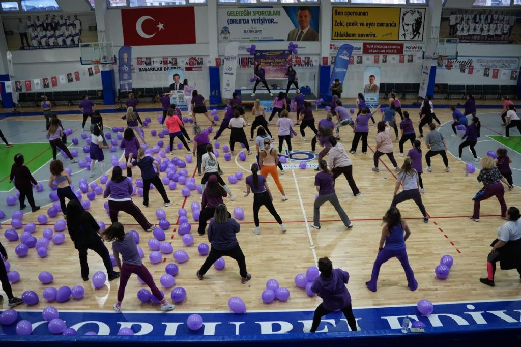 8 Mart Kadınlar Günü programında en enerjik durak Ziya Berhan Kılıç Spor Salonu oldu. Yüzlerce Çorlulu kadının katılımıyla gerçekleşen zumba etkinliği, salonu âdeta bir şenlik alanına çevirdi. Hareketli müzikler eşliğinde dans eden kadınlar, hem stres attı hem de dayanışmanın ve bir arada olmanın keyfini çıkardı. Alkışların ve kahkahaların müzikle karıştığı atmosfer, izleyenlere büyük bir enerji verdi.