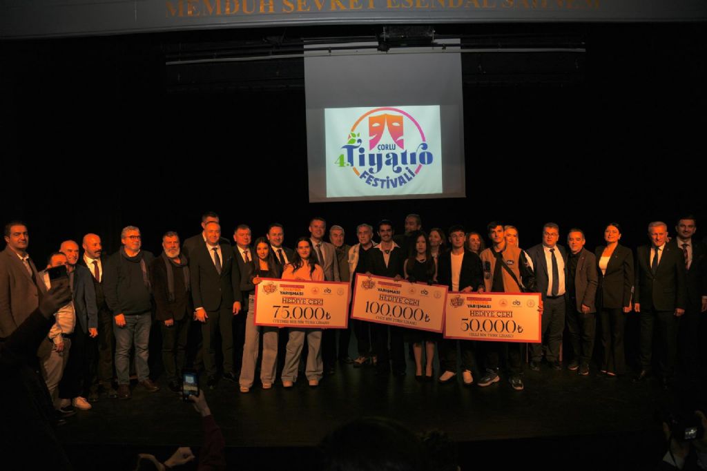 Yarışma sonunda dereceye giren okullara toplamda 225 bin TL ödül takdim edildi. Başarıyı teşvik etmek amacıyla; birinciye 100 bin TL, ikinciye 75 bin TL ve üçüncüye 50 bin TL tutarındaki ödülleri bizzat takdim eden Belediye Başkanı Ahmet Sarıkurt, törende yaptığı konuşmada, “Çorlu’muzda kültür ve sanatın kalbinin attığı, tiyatronun ışığının sahneden hayata yayıldığı çok özel bir buluşmada bir aradayız. Bu yıl dördüncüsünü gerçekleştirdiğimiz Çorlu Tiyatro Festivali’nin heyecanını hep birlikte yaşıyoruz. 26 - 30 Mart tarihleri arasında 5 gün boyunca sürecek festivalimizde; tamamı yerel tiyatro grupları tarafından hazırlanan 7 tiyatro oyunu ve 1 atölye çalışması sanatseverlerle buluşacak. Bu yönüyle festivalimiz; yalnızca bir etkinlik olmanın ötesinde, kentimizin kendi sanat gücünü ortaya koyduğu, üretimin ve emeğin sahneye taşındığı çok kıymetli bir organizasyon olacak. Festivalimizin açılışında bizleri onurlandıran kıymetli sanatçılarımız Sayın Cihat Tamer ve Sayın Ferdi Akarnur’a da ayrıca hoş geldiniz diyor, hem sanat dünyamıza hem de festivalimize sağladıkları katkıları için yürekten şükranlarımı sunuyorum” dedi.