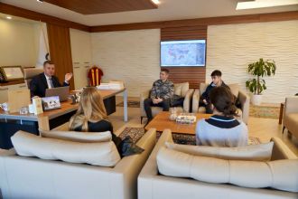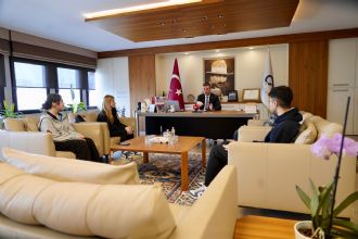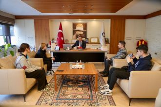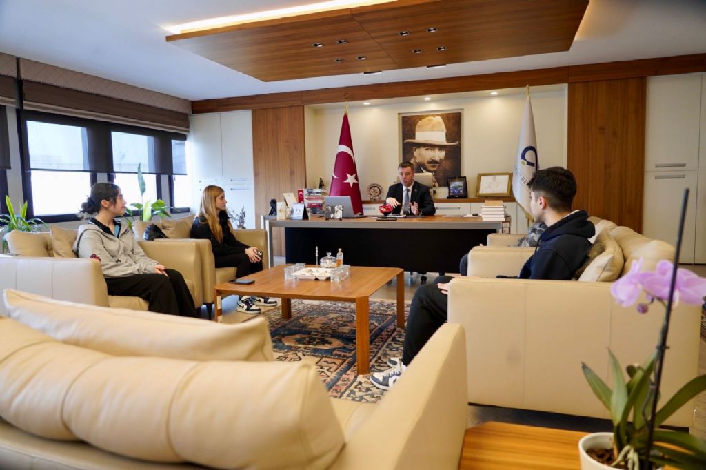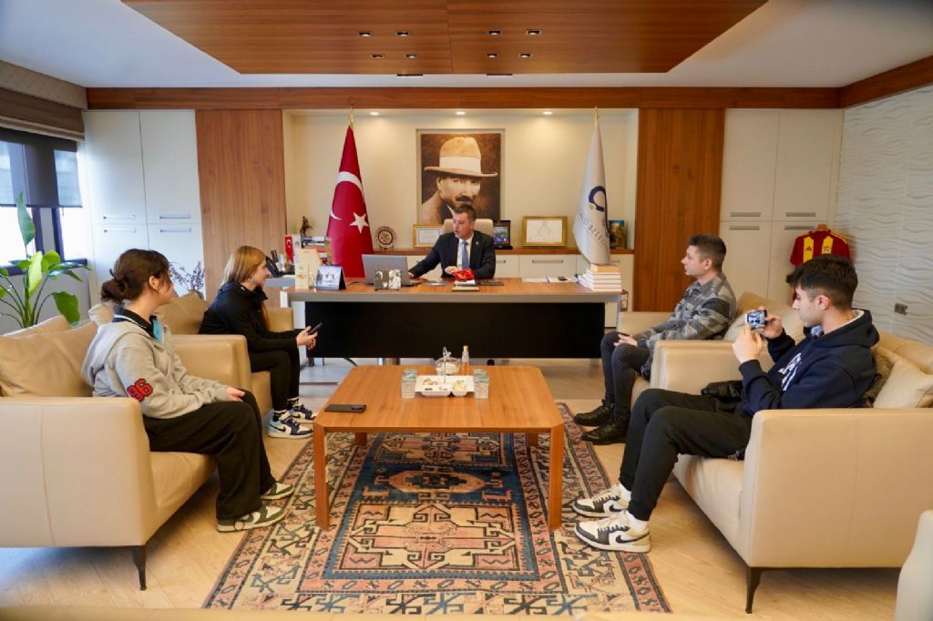 Öğretmenleri Sait Örs rehberliğinde belediyeyi ziyaret eden kulüp üyeleri Cemre Çelik, Yusuf Efe Turtar ve Dila Sezgin, hazırladıkları sorularla yerel yönetimin dinamiklerini sorguladı. Kent yönetimi, toplumsal sorumluluk projeleri ve demokrasi kültürü üzerine gerçekleştirilen röportajda Başkan Sarıkurt, gençlerin merak ettiği tüm soruları içtenlikle yanıtladı.