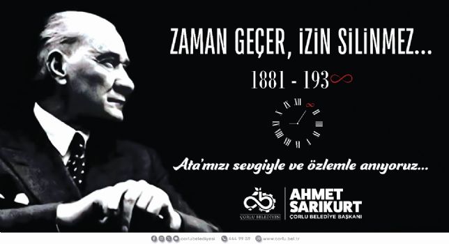 Çorlu Belediye Başkanı Ahmet Sarıkurt, 10 Kasım Gazi Mustafa Kemal Atatürk`ün vefatının 87. yıl dönümü dolayısıyla anma mesajı yayımladı.