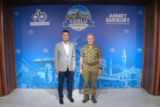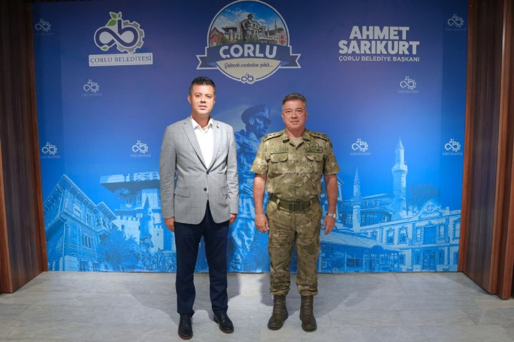 Yüksek Askeri Şura (YAŞ) kararlarıyla yeni görev yerlerine atanan veya emekliye ayrılan Çorlu'daki komutanlar, Çorlu Belediye Başkanı Ahmet Sarıkurt'a veda ziyaretinde bulundular.