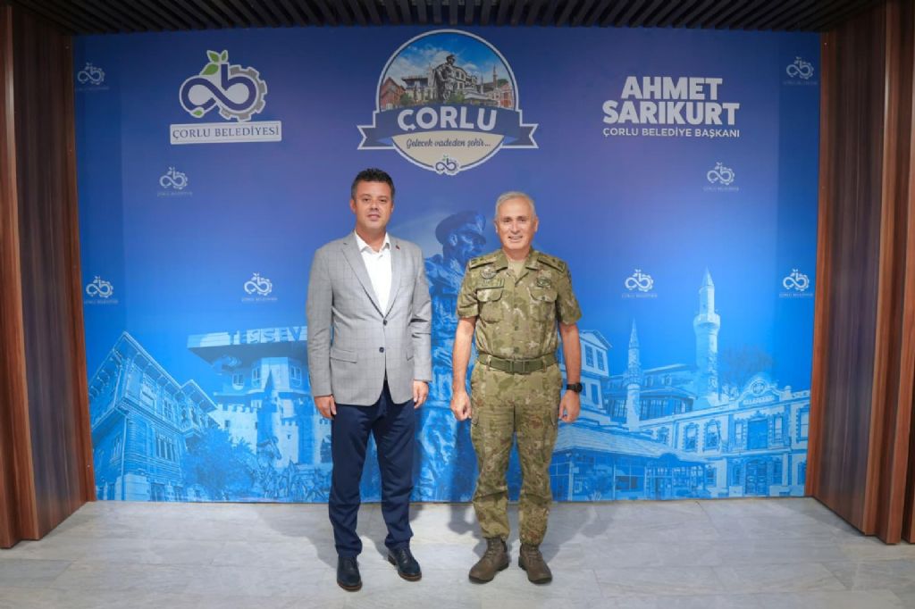 Başkan Ahmet Sarıkurt, nazik ziyaretleri için komutanlara şükranlarını sunarak Korgeneral Muammer Alper’e Çorlu'ya yaptığı değerli katkılar ve hizmetler için teşekkür ederek yeni görev yeri olan İzmir'de başarılarının devamını diledi. Emekliye ayrılan Tuğgeneral Şefik Atak'a da Çorlu'ya sunduğu hizmetler için teşekkürlerini ileten Sarıkurt, bundan sonraki hayatında sağlık ve huzur dolu bir yaşam dilediğini belirtti.
