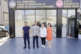 Çorlu Belediye Başkanı Ahmet Sarıkurt, Belediye Meclis Üyeleri Yunus Emre Sülün ve Hülya Perin Meriç ile birlikte, S.S. Yeni Çorlu Esnaf ve Sanatkârlar Kredi ve Kefalet Kooperatifi'ni ziyaret etti. Heyet, Kooperatif Başkanı Yıldız Filiz tarafından misafir edildi.