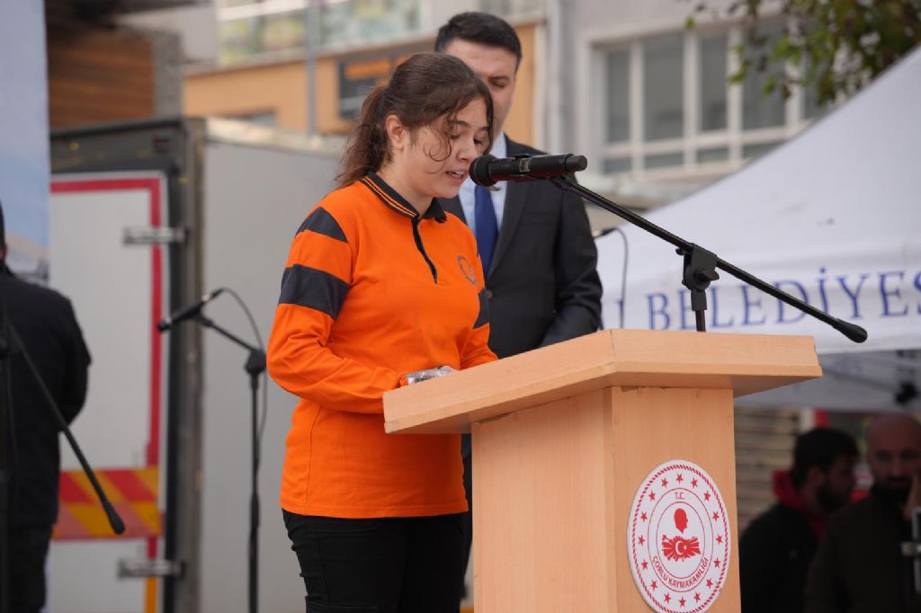 Kutlama programında, 1 Kasım Çorlu'nun Kurtuluşu vesilesiyle düzenlenen okullar arası şiir yarışmalarında dereceye giren öğrenciler, şiirlerini okuyarak duygu dolu anlar yaşattı.