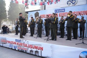 Çorlu Halk Eğitimi Merkezi Halk Oyunları ekibi, yöresel gösterilerini sunarken 5. Kolordu Komutanlığı Bölge Bando Komutanlığı da mini bir konserle kutlamalara renk kattı.