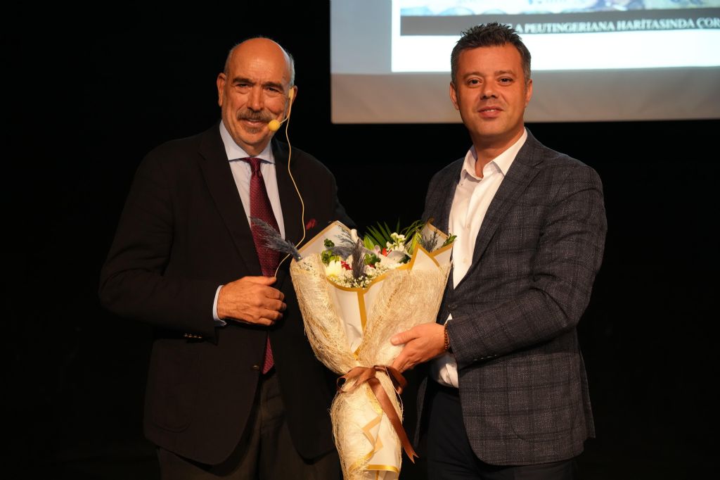 Prof. Dr. Mustafa Sayar, sunumunda özellikle Çorlu'nun Trakya'daki kültürel ve ticari önemine odaklandı. Sayar, bölgenin antik yollar üzerindeki kritik rolünü ve bu durumun Çorlu'nun gelişimine nasıl etki ettiğini detaylı bilgilerle anlattı.