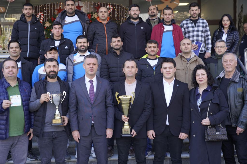 Çorlu’nun spor kenti vizyonuna katkı sunan ve engel tanımayan başarılarıyla dikkat çeken kulüpler, kupalarıyla birlikte Başkan Sarıkurt’u ziyaret etti. Ziyarette sporcuların azmi ve elde edilen dereceler takdirle karşılandı.