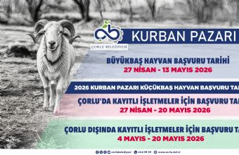 2026 yılı Kurban Bayramı öncesinde Çorlu Belediyesi Veteriner İşleri Müdürlüğü tarafından 2026 yılı Kurban Bayramı öncesinde Çorlu Belediyesi Veteriner İşleri Müdürlüğü tarafından kurulacak kurban pazarları için başvuru ve yer tahsis süreçleri başlıyor. Büyükbaş ve küçükbaş hayvan satış alanlarında yer almak isteyen üretici ve işletmeler, belirlenen tarihler arasında başvurularını gerçekleştirebilecek.