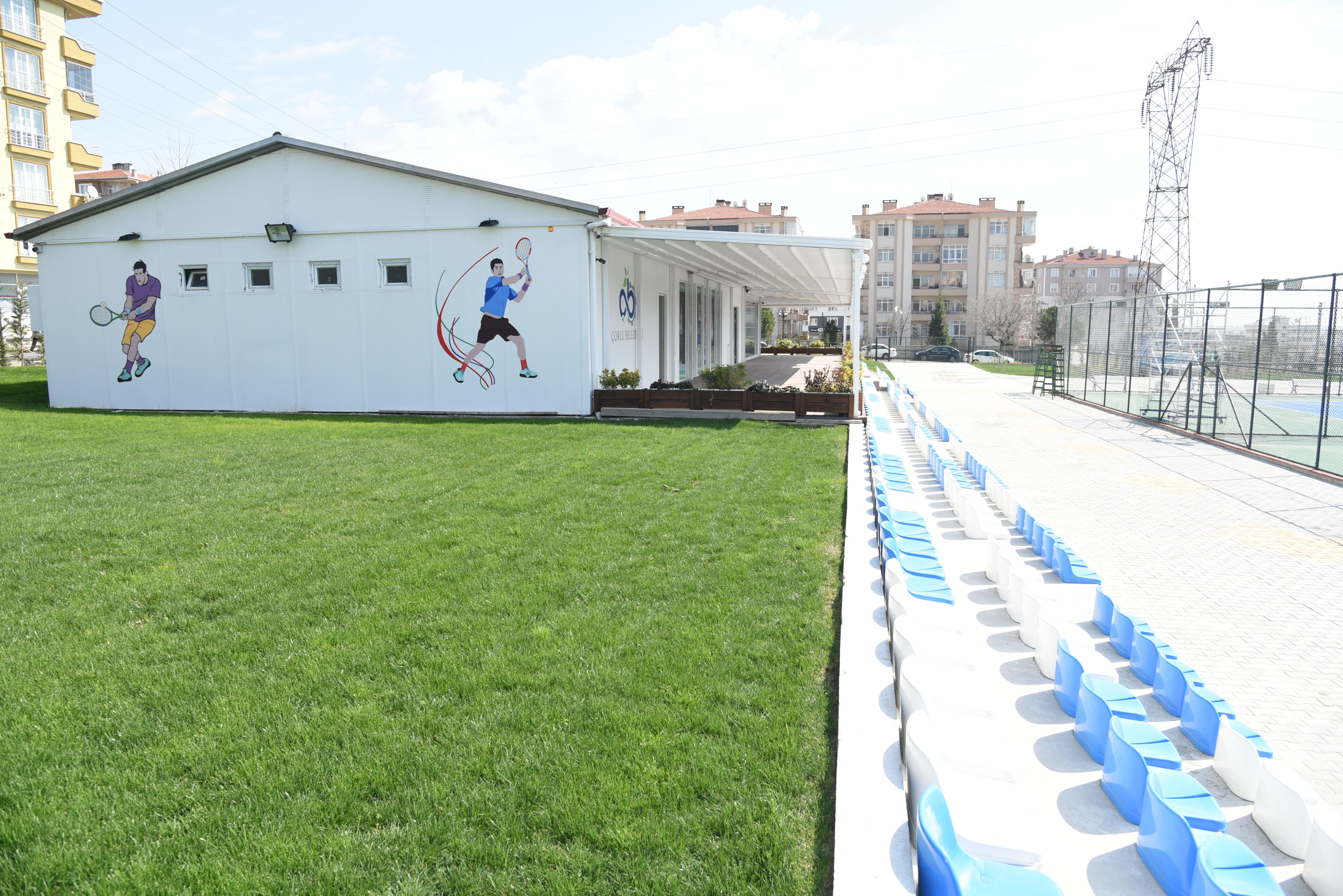 1'i kapalı olmak üzere toplamda 4 tenis kortu bulunan 12.040 metrekarelik alan üzerinde ayrıca 300 kişilik betonarme tribün, fitness salonu, soyunma odaları ve idari ofislerin bulunduğu 272 metrekarelik bir bina, deck zeminli açık kafeterya, ağaç dikimi ve bitkilendirme çalışması yapılan 5.127 metrekarelik yeşil alan, araç otoparkı, yürüyüş yolları, kondisyon aletleri ve çocuklar için kauçuk zemin üzerine 2 adet salıncak ve 2 adet taherevalliyi de içeren tek kuleli oyun grubu bulunuyor.