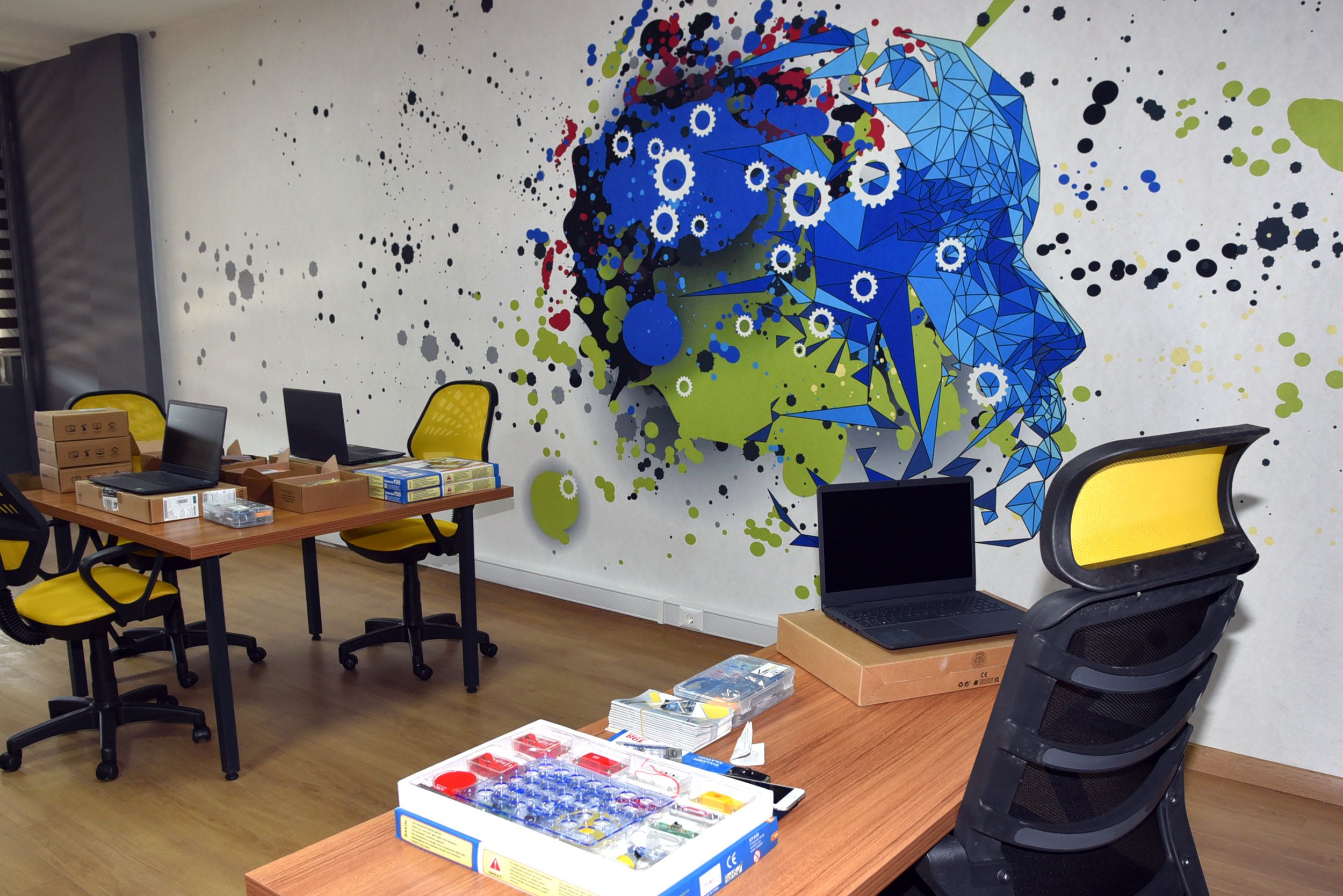 Robotik Kodlama Atölyesi'nde öğrencilerin teknoloji ekosistemini daha yakından deneyimleyebilmeleri adına ulusal ve uluslararası yarışmalara katılımlarına olanak sağlanacak ve gerekli tüm makine, teçhizat ve ekipman bu merkez içerisinde kendilerine sunuluyor.